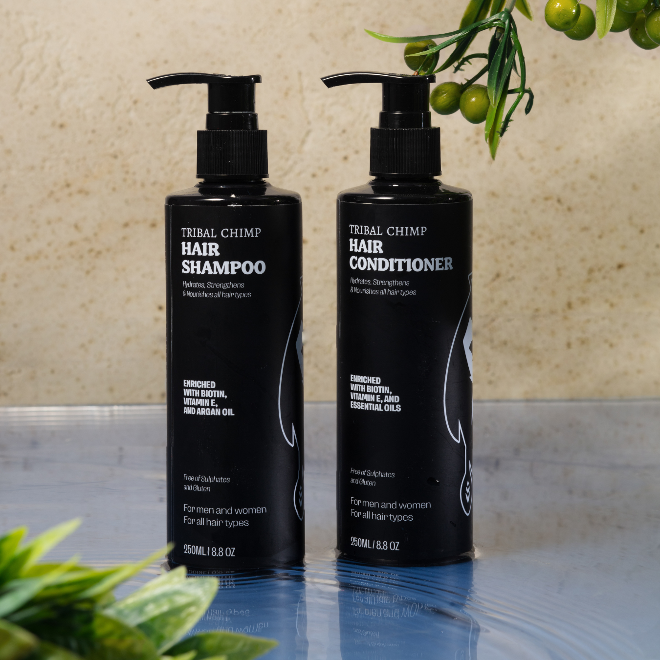 Tribal Chimp's Shampoo + Conditioner Bundle is meticulously crafted to rejuvenate, fortify, and amplify your hair, delivering a powerhouse formula for all hair types. Designed to provide natural volume after every wash.