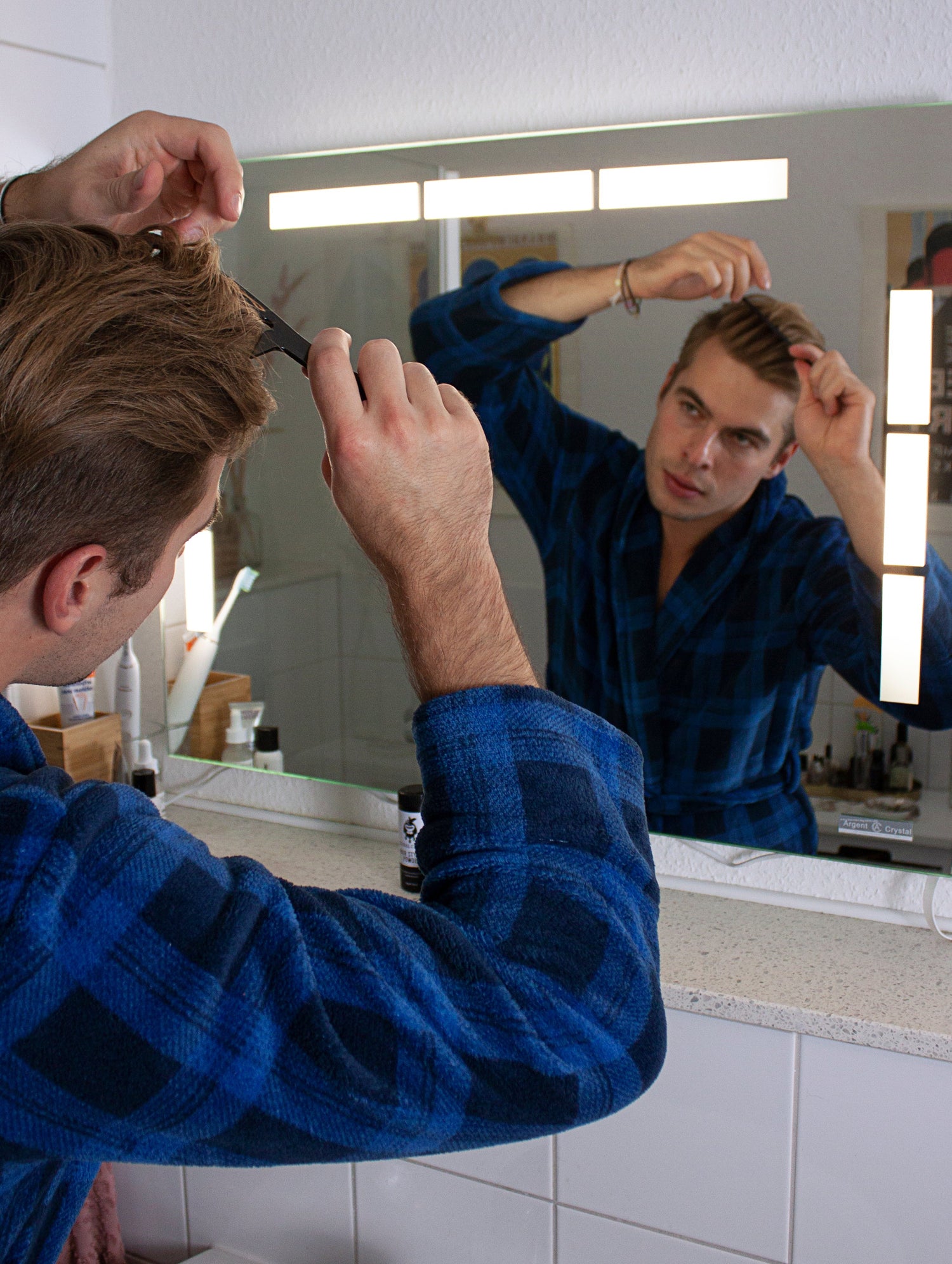 3️⃣ Use a comb or fingers to style as desired.